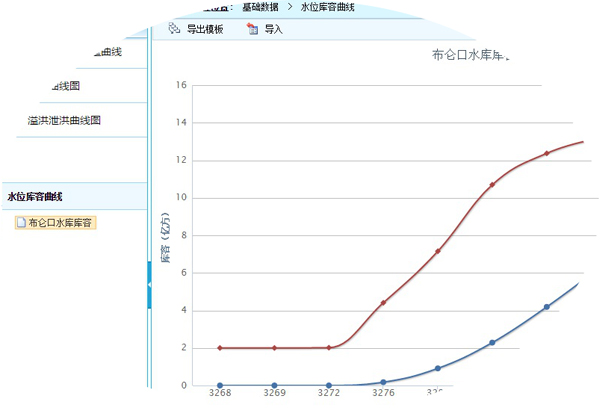 基礎(chǔ)數(shù)據(jù)主要提供對(duì)測(cè)站數(shù)據(jù)進(jìn)行報(bào)表展示的功能。包括水位水庫(kù)曲線、水文站水位流量曲線、蓄能曲線和溢洪泄洪曲線。用戶可以通過(guò)導(dǎo)入本地?cái)?shù)據(jù)生成對(duì)應(yīng)曲線圖。