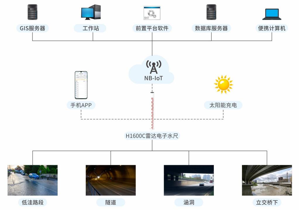 H1600C雷達(dá)電子水尺主要應(yīng)用場景包括城市低洼道路、立交橋出入口、涵洞和隧道出入口等易積水環(huán)境。