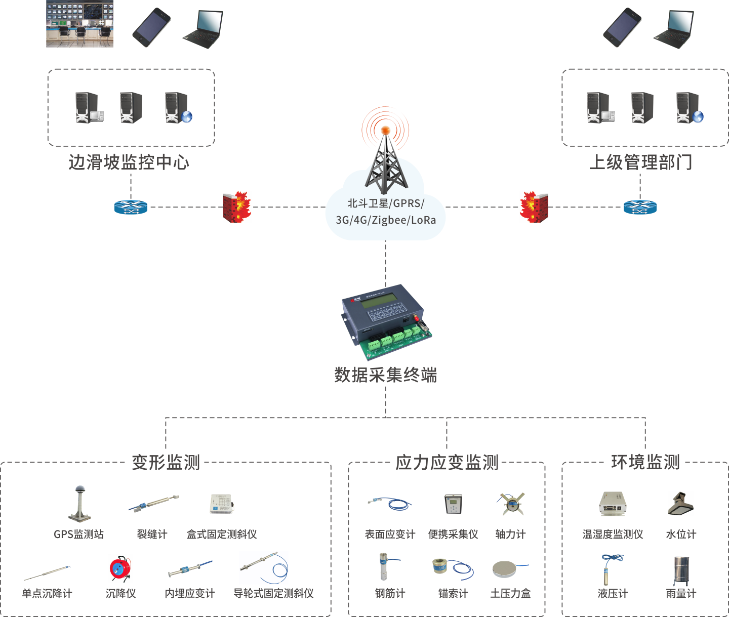 1、實(shí)時(shí)采集多種監(jiān)測數(shù)據(jù),包括雨量、泥水位、地聲、次聲、孔隙水壓力、土體沉降、地表裂縫、深部位移、地下水、土壓力、表面位移、土壤含水量、圖像視頻、電源電壓和環(huán)境溫度等數(shù)據(jù);